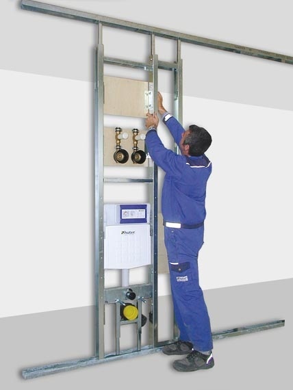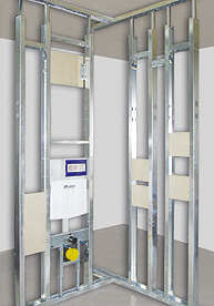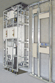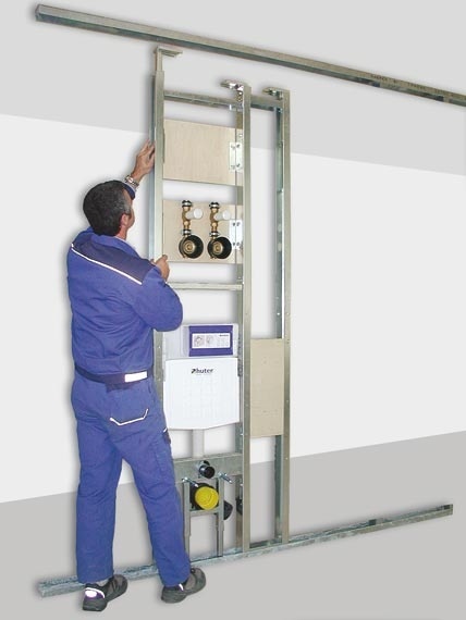 Die Ausschubmodule wurden für den Einbau in 75 mm und 100 mm Trockenbauboden- und Deckenschiene entwickelt. Sie werden unten in die Bodenschiene eingesetzt. Die Verbindung mit der Deckenschiene erfolgt über einen gleitenden Deckenanschluss. Die Ausschubmodule werden passgenau in die Trockenbauwand integriert. Es gibt klare Schnittstellen zum Trockenbauer.