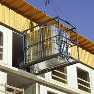 Die Lieferung der Fertigbäder auf die Baustelle und Einbringung erfolgt in Abstimmung mit der Baufirma. Die Einbringung der Fertigbäder erfolgt als Einheit oder elementiert. Die Fertigbäder werden an den vorgesehenen Bestimmungsorten aufgestellt und die Stockwerksverbindungen vorgenommen. Von der Unterkante des untersten Fertigbads bis zur Oberkante des obersten Fertigbads erfolgt die Installation durch Huter. Die Anbindung unten bzw. die Entlüftung übers Dach wird vom Installateur hergestellt. Alle Fertigbäder sind mit einem Türprovisorium verschlossen, um Beschädigungen zu verhindern.