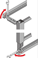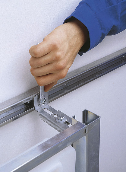 Dreh-Schnellverschluss für die Befestigung der Vorwand-Elemente und -Module an der Boden- und Wandmontageschiene.