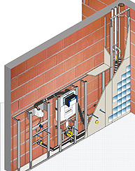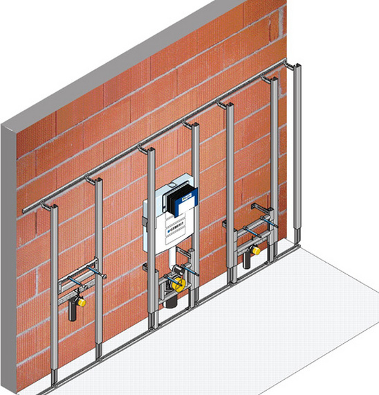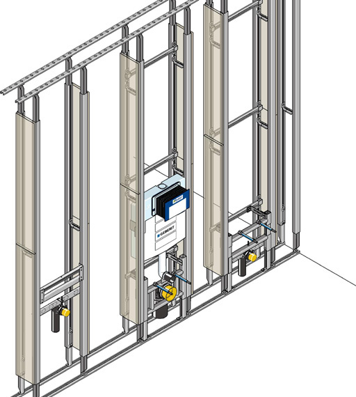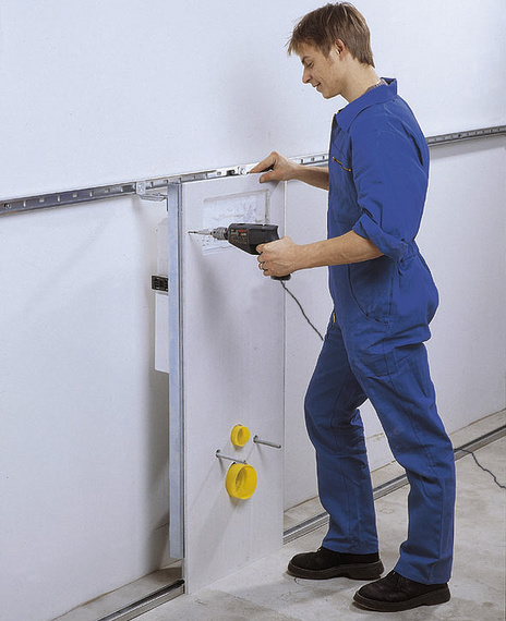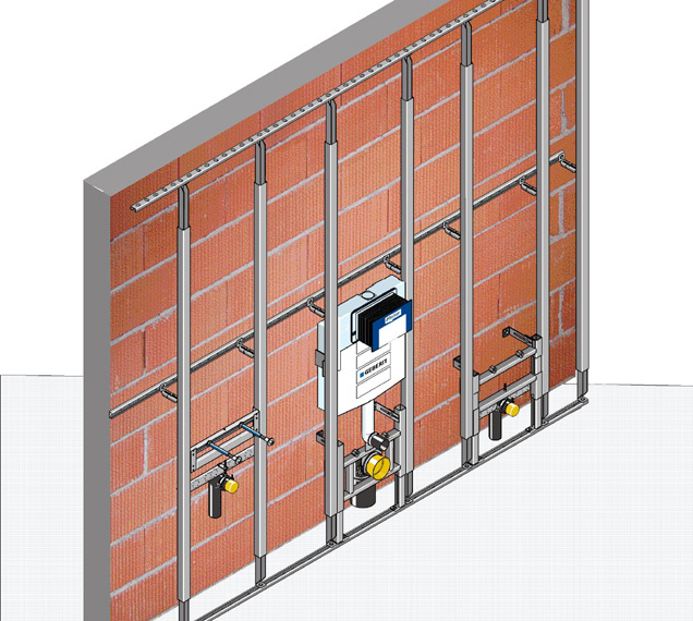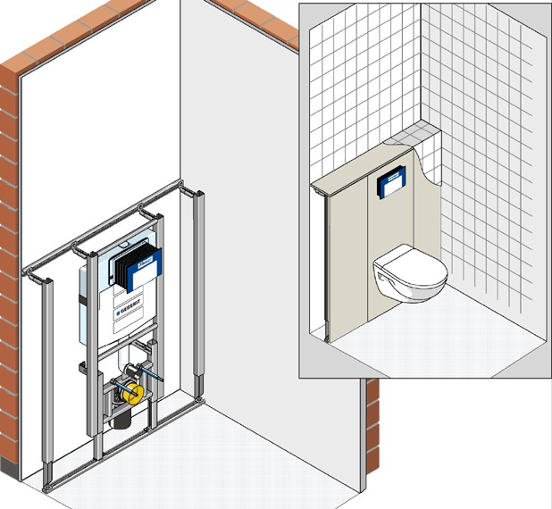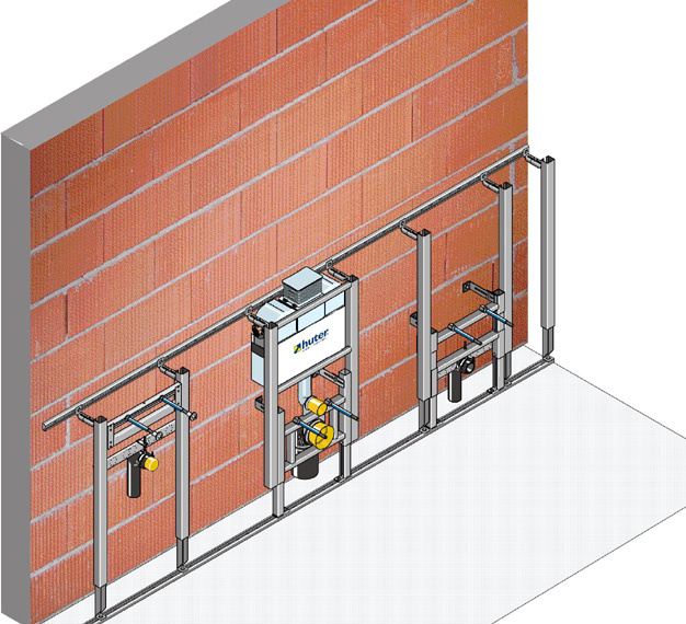 Das Huter proV-Montagesystem ist ein komplettes Baukastensystem bestehend aus einem stabilen Tragsystem (Montageschienen und Stehern), Einbaumodulen (für WC, WT, Urinale, Bidet usw.) oder Komplett Elementen (alternativ für WC und WT-Module) sowie Zubehör (Schrauben, Fugenkleber ...) und Beplankung (vorgefertigt mit allen notwendigen Ausschnitten).