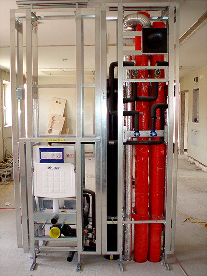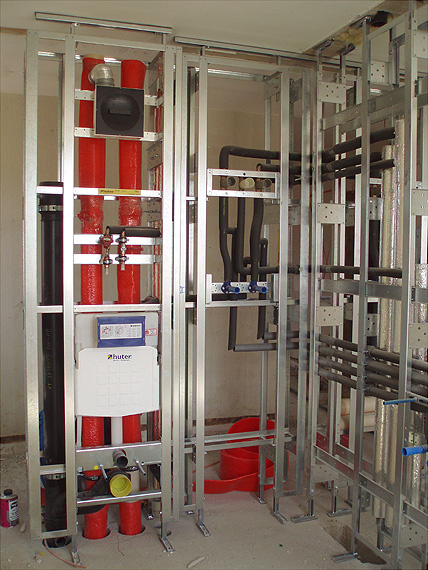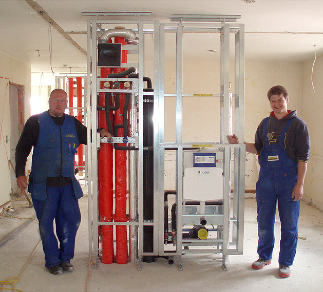 Bei der Sanierung des Schulungszentrums Fohnsdorf wurden für die Sanitärinstallationen Huter Installationswände eingesetzt.